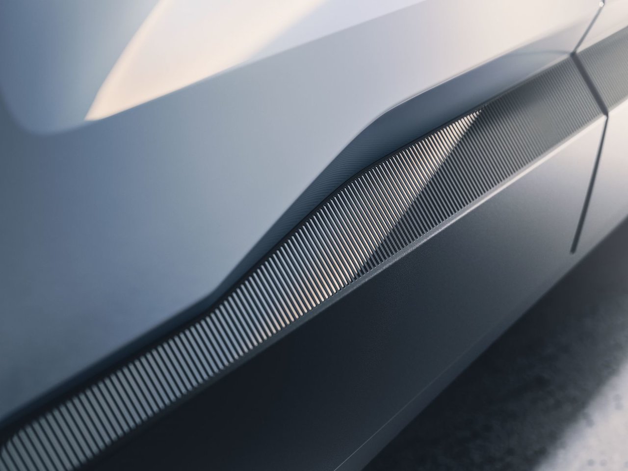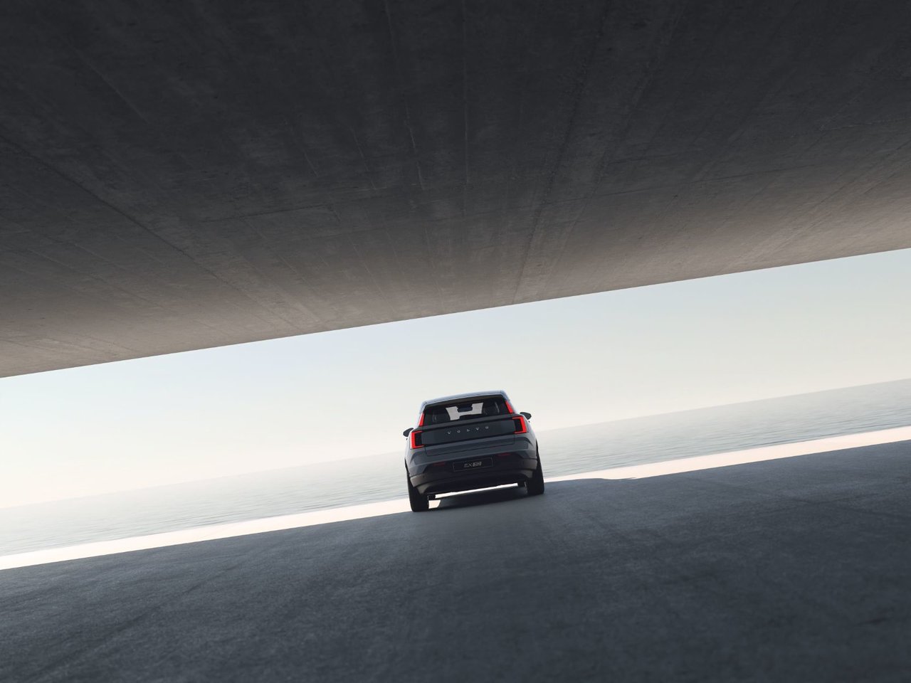 Malgré sa petite taille, ce VUS électrique Volvo porte fièrement le long empattement et les larges roues qui agissent comme des marques de commerce du fabricant suédois. Les phares en forme de « marteau de Thor », un autre élément récurrent sur les Volvo, reviennent sur ce VUS, accompagnés d’un avant fermé qui laisse deviner la nature électrique du véhicule.